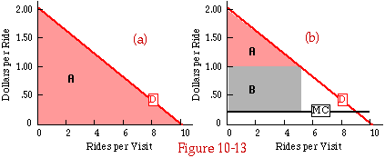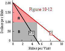 The conclusion can be simply stated. The effect of the entrance fee is to transfer the consumer surplus to the producer, giving him the sum of both surpluses--which he maximizes by setting price equal to marginal cost. If you think this sounds familiar, you are right. It is the same argument that was used at the end of Chapter 4 to show why movie theaters should sell popcorn at cost. For more on that subject, stay tuned. It is also the pattern of pricing often used by sellers of telephone services, electricity, and a variety of other goods and services.