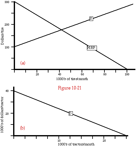 14. Figure 10-21a shows the supply curve for size 18 tractor tires. SuperOx, a tractor company, is the only purchaser of such tires. MRP is the marginal revenue product of such tires for SuperOx.