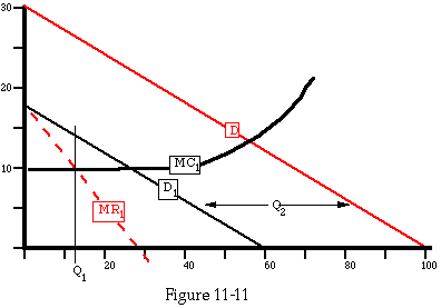 Since all of the firms are producing identical goods, only the firm charging the lowest price matters; nobody will buy from any other. Figure 11-13 shows the situation from the standpoint of one firm. Pl is the lowest of the prices charged by the other firms.