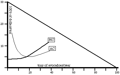 4. Figure 11-14 shows marginal cost and average cost for an avocado farm; it also shows demand, D, for avocados. Answer each question first on the assumption that a strategy is defined as a quantity and again on the assumption that it is defined as a price.