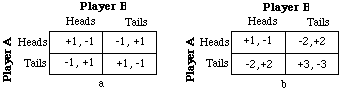 c. If the players both picked heads or tails at random, they would break even under either set of payoffs. Does this imply that both sets of payoffs are equally fair to both players? Discuss.