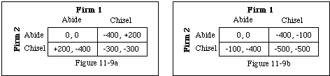b. Figure 11-15b shows a different set of payoffs. Answer the same questions.