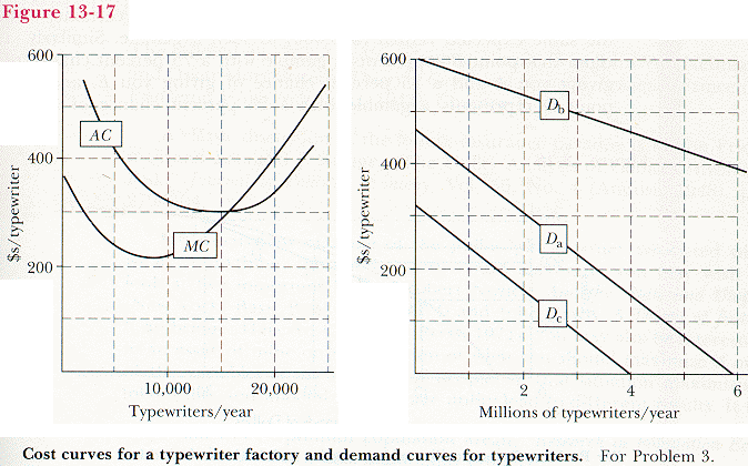 3. Figure 13-17a shows the cost curves for producing typewriters in a typewriter factory. The inputs are available in perfectly elastic supply; all firms are identical and there are no restrictions on starting new firms. Each firm can run one factory.