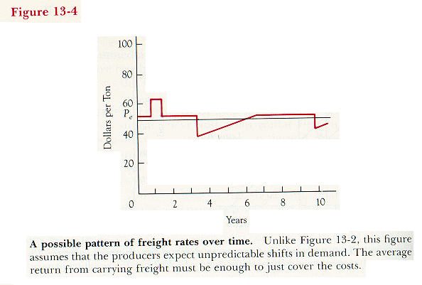 A possible pattern of freight rates over time. Unlike Figure 13-2, this figure assumes that the producers expect unpredictable shifts in demand. The average return from carrying freight must be enough to just cover the costs.