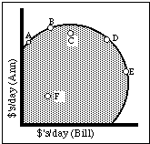 5. The shaded area on Figure 15-4b shows possible outcomes in terms of their effect on the incomes of two people, Ann and Bill; nobody else exists. Which labeled points are Pareto efficient? Which are Marshall efficient? Which are Pareto superior to point A? Which are Marshall superior to point A? Which are potentially Pareto superior to point A?