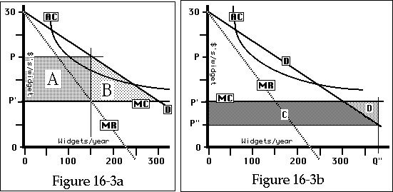 further reduction to P" (Figure 16-3b) would cost the monopoly C + D
