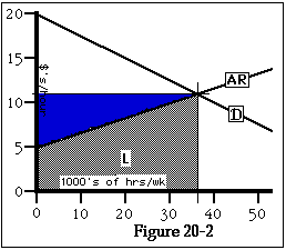 Figure 20-2 is a supply and average revenue diagram for theft. The horizontal axis shows hours of theft per year. The vertical axis shows dollars stolen per hour--the "wage" that thieves receive. The supply curve S, like any other supply curve, shows how much labor will be supplied at any wage--how the number of hours spent stealing depends on the number of dollars per hour that can be stolen. The average revenue curve AR shows how the revenue from an hour spent stealing varies with the amount of theft. As the number of thieves stealing increases, the return per hour falls, so AR slopes down, just like a demand curve.
