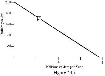 3. Figure 7-15 shows the demand curve for peanut butter. A consumption tax is imposed; every purchaser must pay the government $0.40 for every jar of peanut butter purchased. Draw the new demand curve for peanut butter.
