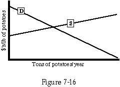 4. Figure 7-16 shows demand and supply for potatoes in 1925. For each quote below, redraw the figure showing the change described. The parts are alternatives, not successive events. The authors of the quotes may be assumed to know as much economics as the average newspaper reporter. You may explain your answers if you wish.