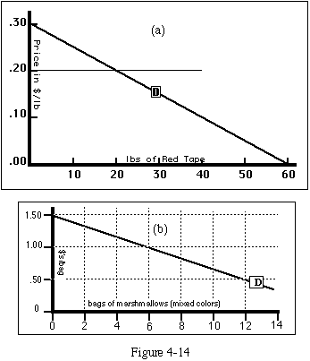 8. Figure 4-14a shows your demand curve for red tape. There is no market for red tape, but the government, which is trying to reduce its inventory, orders you to buy 50 pounds of it at $0.20/pound. How much better or worse off are you as a result?